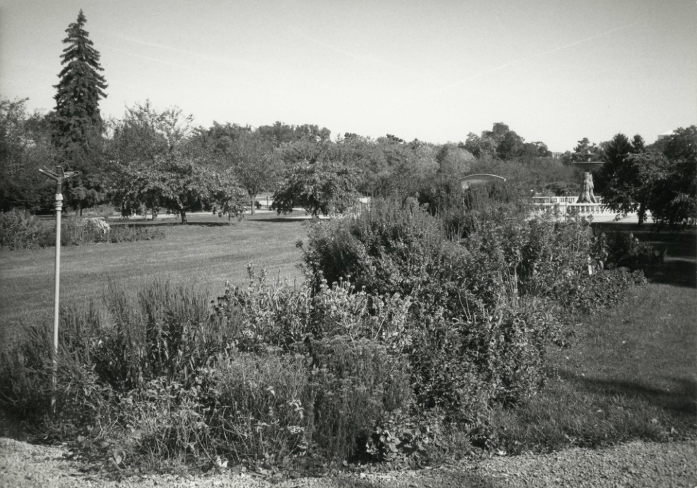 The Detroit Zoological Park is situated in Royal Oak and Huntington Woods in Oakland County, Michigan, at the intersection of Woodward Avenue and Ten Mile Road, about two miles north of the city limits of Detroit. It is a zoological park and arboretum which displays over 1,200 animals, largely in barless exhibits, in a landscaped setting. The present day zoo stands on 125 acres. It is bordered on the south by Ten Mile Road, on the north by a residential area, on the west by Rackham Golf Course, and on the east by Woodward Avenue. The property is an irregular shape with an elongated east-west axis. The western portion of the site is almost twice as wide as the eastern portion. Approximately two thirds of the site is located in Royal Oak and the other one third in Huntington Woods. The original site was surveyed by 0. C. Simonds, then a garden designer in Detroit. It was a low, swampy piece of land that had three areas of higher land with groves of oak trees. It was crossed in a north-south direction by three drainage ditches. The low area was in the center of the site. At that time of the survey, it was used for farming, as was the property around the site. The central portion of the site was filled and two major lakes, Island Lake and Clover Leaf Lake, were dredged. Later North American Lake (now renamed Pierson Lake) was dredged just south and a little west of Clover Leaf Lake. The design scheme of the zoo divides itself into two basic landscape styles which are determined by the natural characteristics of the site. One is naturalistic with free flowing lines that follow the existing forms of the tree patterns and topography. The other is a formal or symmetrical character which works well on the level ground. The naturalistic style is unified by paths which meander to fit the contour of the ground and help to display the collection of animals on their margins. The exhibits are carefully screened and viewed only from one side. Special measures are taken to provide background for each exhibit. The formal style is best expressed in the symmetry of the central mall and the bird house. A French Renaissance fountain surrounded by a balustrade was added to the central mall. A third style of design, 'rustic,' is apparent in the area around the trout stream which was built during the Depression and in some of the exhibits. Several structures with gunited logs and tree branches were constructed. Log cabins were also built and split rail fencing placed around the farmyard.