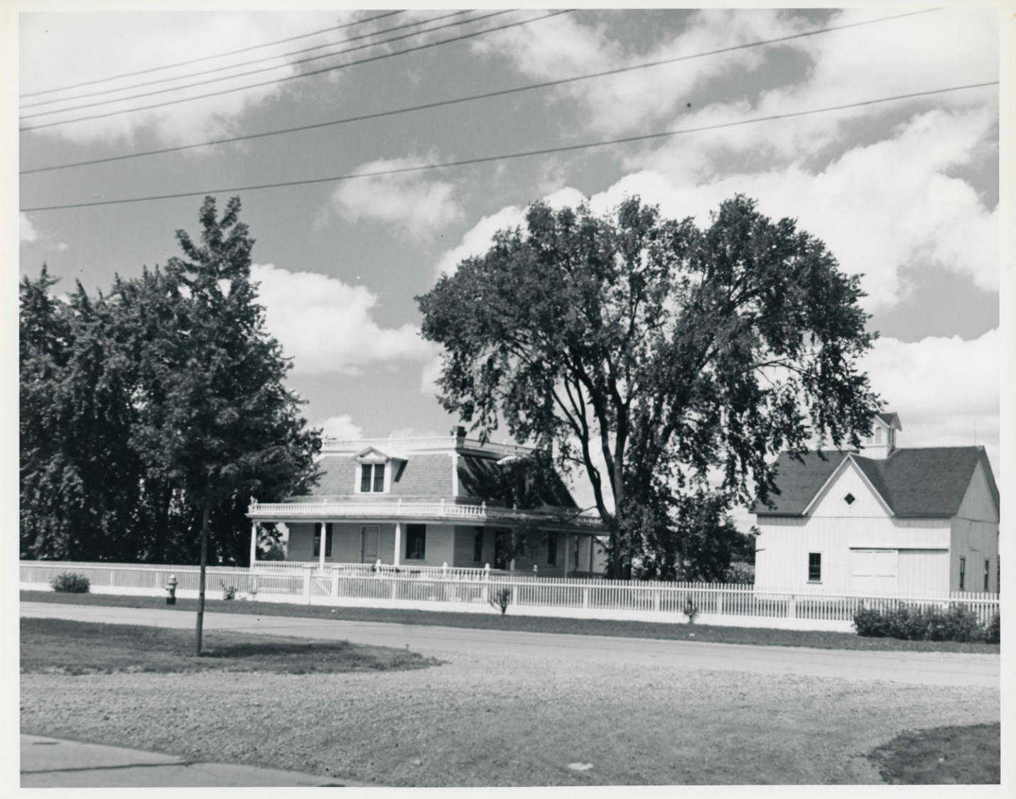 The Henry Ford "Square House" is located on a small lot in a twentieth century residential area in suburban Garden City, outside of Detroit. Retail land uses have intruded upon the dwelling in recent years with the construction of a discount store and shopping center to the rear and side of the house. The house is basically a thirty-one-foot-square, one-and-a-half-story, mansard roofed, clapboarded box. There is a small kitchen addition forming a rear ell with a side porch. The three-bay, center-entrance facade is distinguished only by a bracketed window cap on the gabled, central dormer. The plain door porch with square posts is a 1952 replacement for the original tuscan-columned veranda that extended around the front and right side. This was removed when the house was relocated in 1952. The fenestration consists of one-over-one, double-hung sash. The house is clad in narrow, beveled, novelty siding. The interior of the house has not been altered since its construction. It is divided into four rooms on the first floor with a kitchen in the ell. The front door opens into the living room with a parlor to the left. Behind the living room is a dining room with a lavatory and bedroom to the left of it behind the parlor. Behind the dining room is the kitchen ell. The second floor is reached by means of an enclosed stairway located between the living room and the dining room. There are three dormer-lit bedrooms and a bath on this floor with ample storage space around the perimeter under the slope of the mansard roof. The interior throughout is simply finished with five-panel doors, reeded baseboards and door casings, and plastered walls. The dining room, which served as the kitchen for a short time until the ell was built, has a dado of vertical tongue-and-groove boarding. There are no fireplaces in the house since it was originally equipped with a forced hot air heating system fired by a wood-burning furnace in the basement. The system was converted to oil in 1936. The historic appearance of the interior is enhanced by the old wallpaper and the period furnishings, including a number of pieces that belonged to the Fords during the early years of their marriage.
