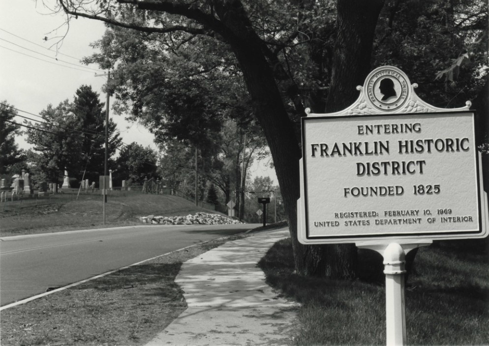 The Franklin Historic District was listed in the National Register of Historic Places in 1969 and was Michigan's first national register district. The nomination form prepared then provided a three-paragraph long description statement and a two-paragraph significance statement. The State Historic Preservation Office's files contain two different boundary descriptions that are vague and contradictory, and the only map lacks detail and does not show the boundary as defined. This new nomination resulted from a Memorandum of Agreement (MOA) for a federally assisted project involving the reconstruction of Franklin Road, which passes through the district. A stipulation in the MOA required the village of Franklin to provide a new national register nomination form for the district. This nomination form accomplishes three goals: It replaces the outdated 1969 nomination form with a new one meeting today's national register documentation standards. It provides a detailed boundary description and map; and It includes a small boundary increase to expand the district slightly to include historic resources that were omitted, or not clearly included, in the original boundary, and also some additional property that is an integral part of the village.