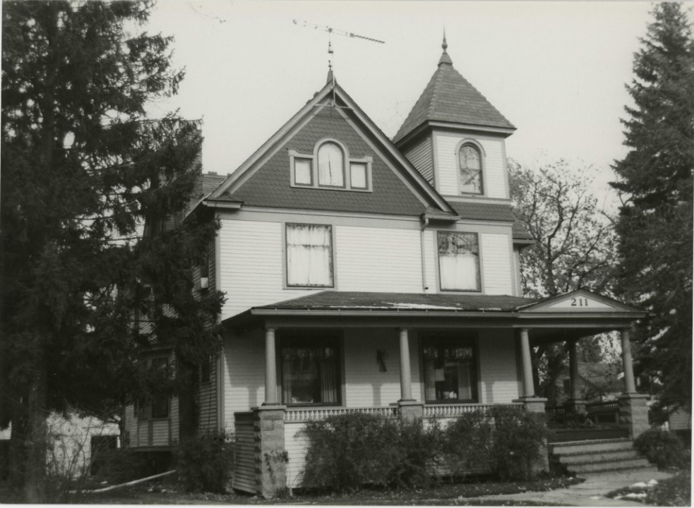 Stylistically, this transitional Queen Anne/Colonial Revival frame home is an extension of the East Michigan Avenue Historic District. The home is similar in size, setback, and design, and like several E. Michigan District homes, is a product of the prolific Elwood Rogers. Like many of Rogers constructions, this building combines the rectangular plan and Palladian window typical of the Colonial Revival with Queen Anne shingle work and a squared corner tower. A full-width one-story porch with a side pediment fronts the building. The residence, which remains in virtually original condition, was recently repainted in brown and gold tones more appropriate to its period of construction. The gambrel-roofed barn/garage to the rear is typical of Elwood Rogers' buildings and also representative of many of the outbuildings preserved throughout the Multiple Resource Area.