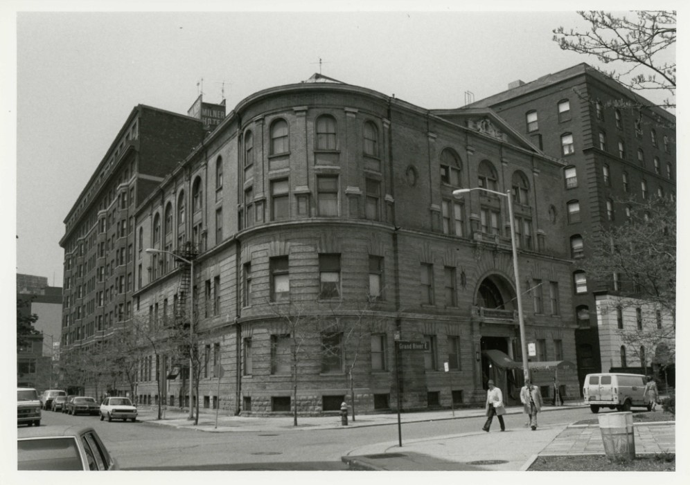 HARMONIE CLUB, 267 E. Grand River Ave., Detroit, Wayne County, MI. PHOTOGRAPHER: Les Vollmert DATE: May, 1980 NEGATIVE: Michigan History Division Dept. of State Lansing, MI. 48918 VIEW: Looking north at the two elevations of the Harmonie Club. PHOTO #: 1 of 9 SEP 4 1980 JUL 9 1980