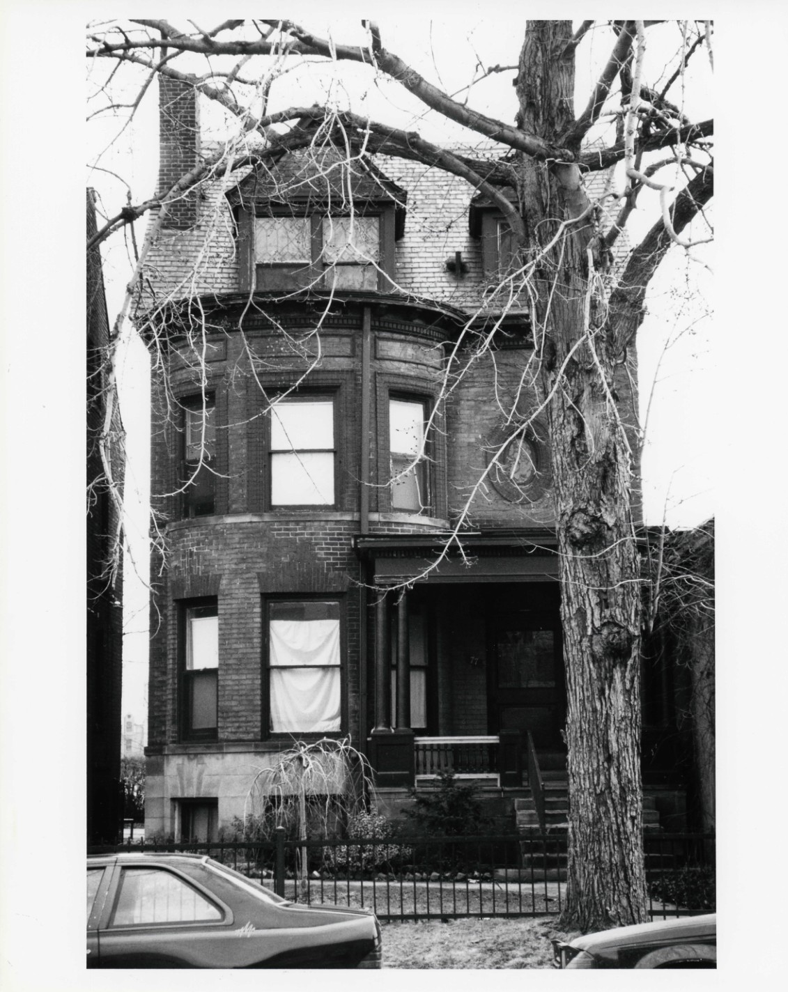 The house at 77 West Hancock is a fine example of a Queen Anne-styled townhouse, something very rare in the city of Detroit. The building was erected in 1894 by Mulford T. Hunter, a retired steamboat captain, to house his daughter, his son-in-law, his granddaughter, and himself. According to an oral history left by Carolyn Schuyler McGraw, the grandchild born to Hunter's daughter, it was her anticipated birth that prompted Hunter to erect the building. If this was the case, then Hunter moved more slowly than he should have. Ms. McGraw was born on September 4, 1893, but the building permit wasn't taken out until June 23, 1894. The permit was issued to William P. Langley, a Detroit builder. Ms. McGraw maintained in the interview that the house was designed by the noted Detroit architectural firm of Smith, Hinchman, and Grylls. However, this information cannot be corroborated by other sources. The history of 77 West Hancock Avenue is inextricably linked to its neighboring property, the house at 71 West Hancock, which was built in 1888-89 for George W. Loomer, a Detroit lumber dealer. In July, 1891 Hunter purchased the house at 77 West Hancock as a residence for himself, his daughter, Caroline, and her husband, Fred McGraw. At the time, Hunter also acquired title to the empty lot immediately west of the home. It was upon this lot that Hunter built the residence at 77 West Hancock in 1894. Once the family moved into their new home, they leased the older home as a rental property. The buildings at 71 and 77 West Hancock Avenue (originally numbered 33 and 37 West Hancock) are the only dwellings that remain on the block from the turn of the century, when the area was regarded as one of Detroit's most fashionable residential neighborhoods and boasted such nearby structures as J. L. Faxon's First Congregational Church (1891), Malcomson and Higginbotham's Central High School (1896). and Ralph Adam Cram's St. Paul's Episcopal Cathedral (1911). all of which survive. According to the indexes to the Detroit building permits, 77 West Hancock was one of the earliest brick dwellings erected on the street and had an original insured value of $8,000--a respectable sum for the period. Hunter, a native of New York State, emigrated to Detroit in 1861. Fred McGraw, his son-in-law, was a member of one of Detroit's older prominent families. He was educated in Detroit and began his business career in the dry goods firm of Charles Root & Company. He eventually established the Detroit Umbrella Company, which he served as president for many years. McGraw sold his interest in the business in 1896 and died the following year at the age of forty-two. William P. Langley, the builder of 77 West Hancock Avenue, served a term as an alderman from Detroit's Third Ward and also served for a time as the president of the Columbian Granulithic Stone Company of Detroit. The ownership of both buildings passed from Captain Hunter through his daughter to Carolyn S. McGraw, who lived at 77 West Hancock until she sold it and the building at 71 West Hancock to Phila J. Draper in 1951. Ms. Draper transformed both buildings into multi-unit apartment buildings. They continue to be operated in this manner under their present owner, Edward Black.