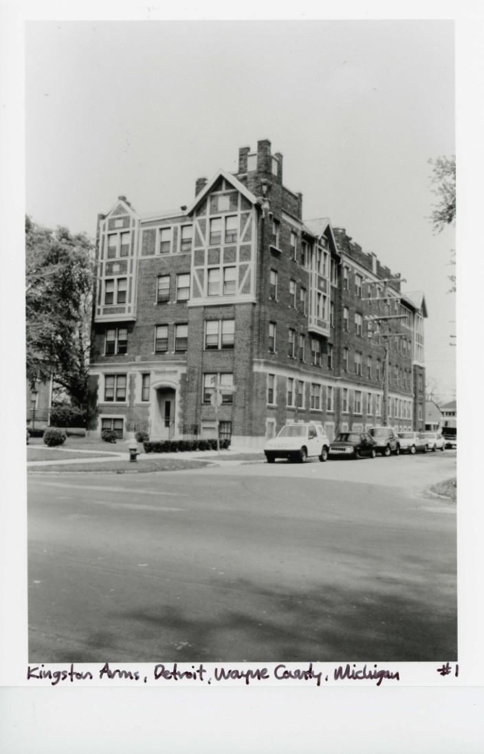The Kingston Arms is a representative example of the eclectic period revival apartment buildings which sprang up along Detroit's major thoroughfares during the 1920s. The building reflects not only the architectural tastes of the day in apartment building design. It also exemplifies and symbolizes the social history of the exuberant period of major population growth in Detroit in the late 1910s and 1920s that was reflected in the rapidly growing number of middle-class apartment buildings in fashionable parts of the city such as East Grand Boulevard.