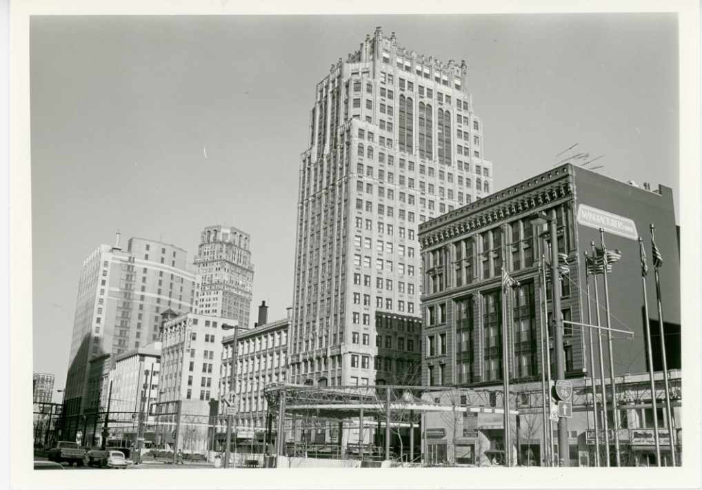 Washington Boulevard Historic District Detroit, Wayne County, Michigan Photographer: Les Vollmert Date: December 1979 Negative: Michigan History Division View: Facing northeast right to left, Stevens Bldg., Industrial Bldg., Palmer Bldg., Empire Bldg. Photo: 4 of 10