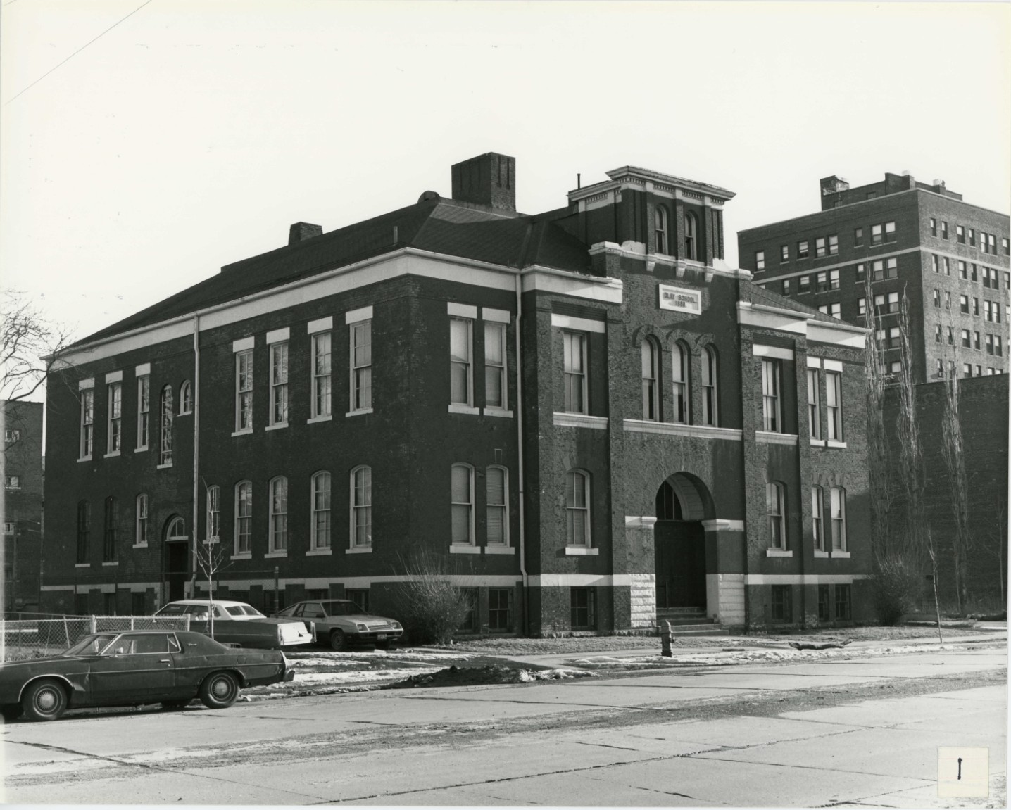 The Clay School was built in 1888 by the Detroit Board of Education and is significant as the oldest school building still standing in Detroit. The building was designed by architect J. B. Tarleton. Built as a neighborhood school, this masonry structure replaced an 1873 frame school building on this site. When Clay School was built in 1888, the street was known as Pitcher Street, then Stimson, then Myrtle Avenue and today as Martin Luther King, Jr. Boulevard. A frame school building was erected on this site in 1873 and was relocated to the northwest side of Detroit to make way for this substantial structure providing additional classrooms. The relocated frame school was renamed Hickey School and has since been demolished. Architect J. B. Tarleton worked as a draughtsman for Mortimer L. Smith from 1880-1884. Mortimer L. Smith was the son and successor of Sheldon Smith, the founder of Smith Hinchman and Grylls. Tarleton served as architect for the Detroit Board of Education from 1884-1890. During that period he designed 10 schools, of which only the Clay School is still standing. Tarleton is listed in the 1890 city directory as having moved to Tacoma, Washington. The Clay School was used as an elementary school until 1923 and from 1923 to 1931 was used as a special education center for discipline problem boys. The building subsequently housed a vocational study headquarters and administrative offices for the Practical Nursing Center. The building was sold by the Detroit Board of Education in 1981 and plans are currently underway to rehabilitate the building for office use using the benefits of the Economic Recovery Tax Act of 1981.