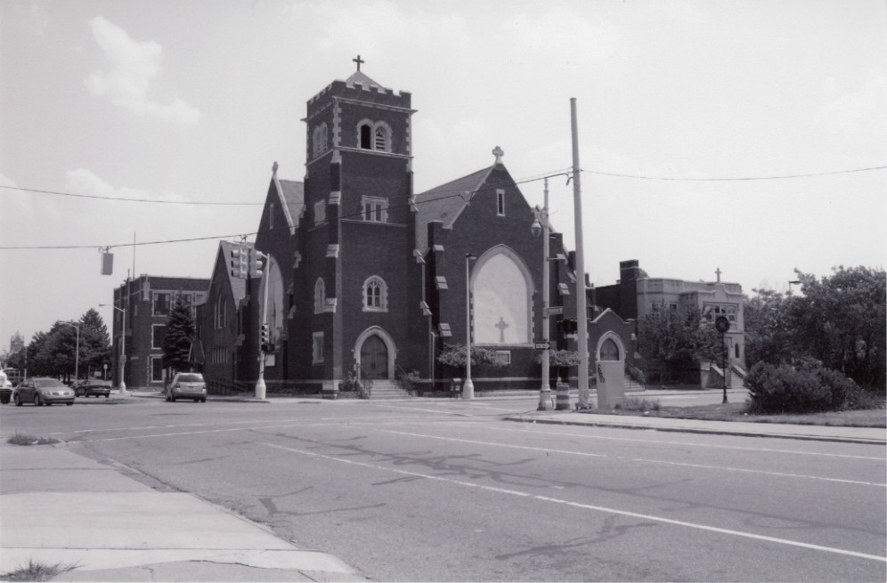 The proposed boundary increase to the Woodbridge Neighborhood Historic District will add the former St. Dominic's Church complex and is approximately one-half block in size. The area to be added is located on the east side of Trumbull Avenue just south of West Warren. The area east of Trumbull, which here forms the existing district's east edge, is bounded by Wayne State athletic fields on the north, a 1980s public housing apartment complex to the east, and a 1990s public housing apartment complex to the south. The former church complex's buildings date from the period of the Woodbridge Neighborhood district's development. When standing within the existing Woodbridge Neighborhood Historic District and looking towards the former church complex from both directions on Trumbull and from the west on Warren, it is clear that the buildings fit the character of the neighborhood in scale and materials. The former church complex faces two and a half story residences and larger apartment buildings nearby across Trumbull. When viewed together these form a dense urban neighborhood that, containing a variety of building types, functioned as a cohesive unit. The former Saint Dominic's Church complex contains four buildings standing at the southeast corner of Trumbull and Warren Avenues. The site is flat with little landscaping. The former church and rectory face Trumbull, the former school faces Warren, and the former convent faces a vacated Lincoln Avenue, parallel with Trumbull.